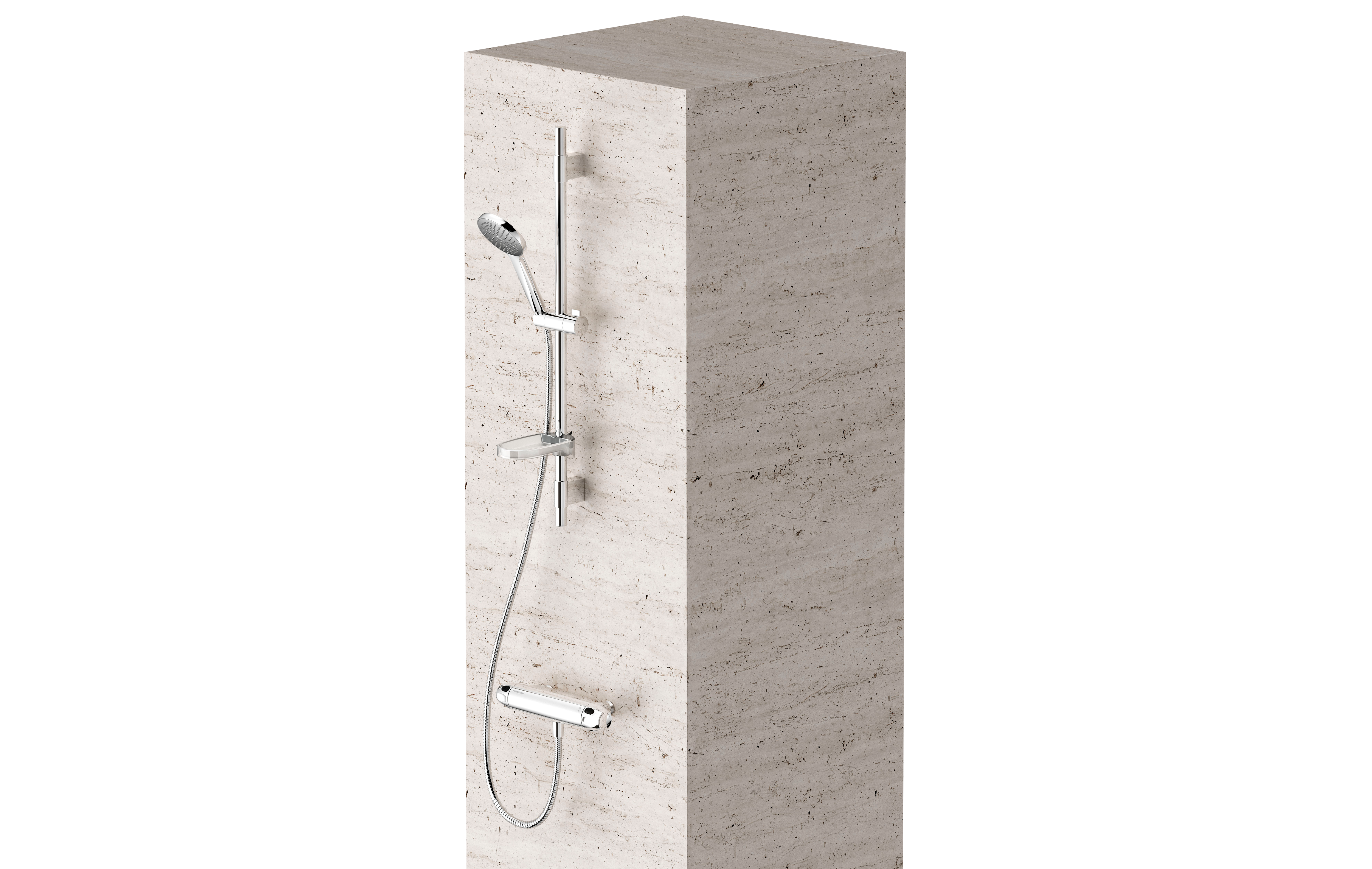 Komplett duschpaket med blandare och duschset i krom. Blandaren tillsammans med det generöst tilltagna munstycket ger en behaglig duschupplevelse med bra tryck och spridning utan att slösa på vattnet.